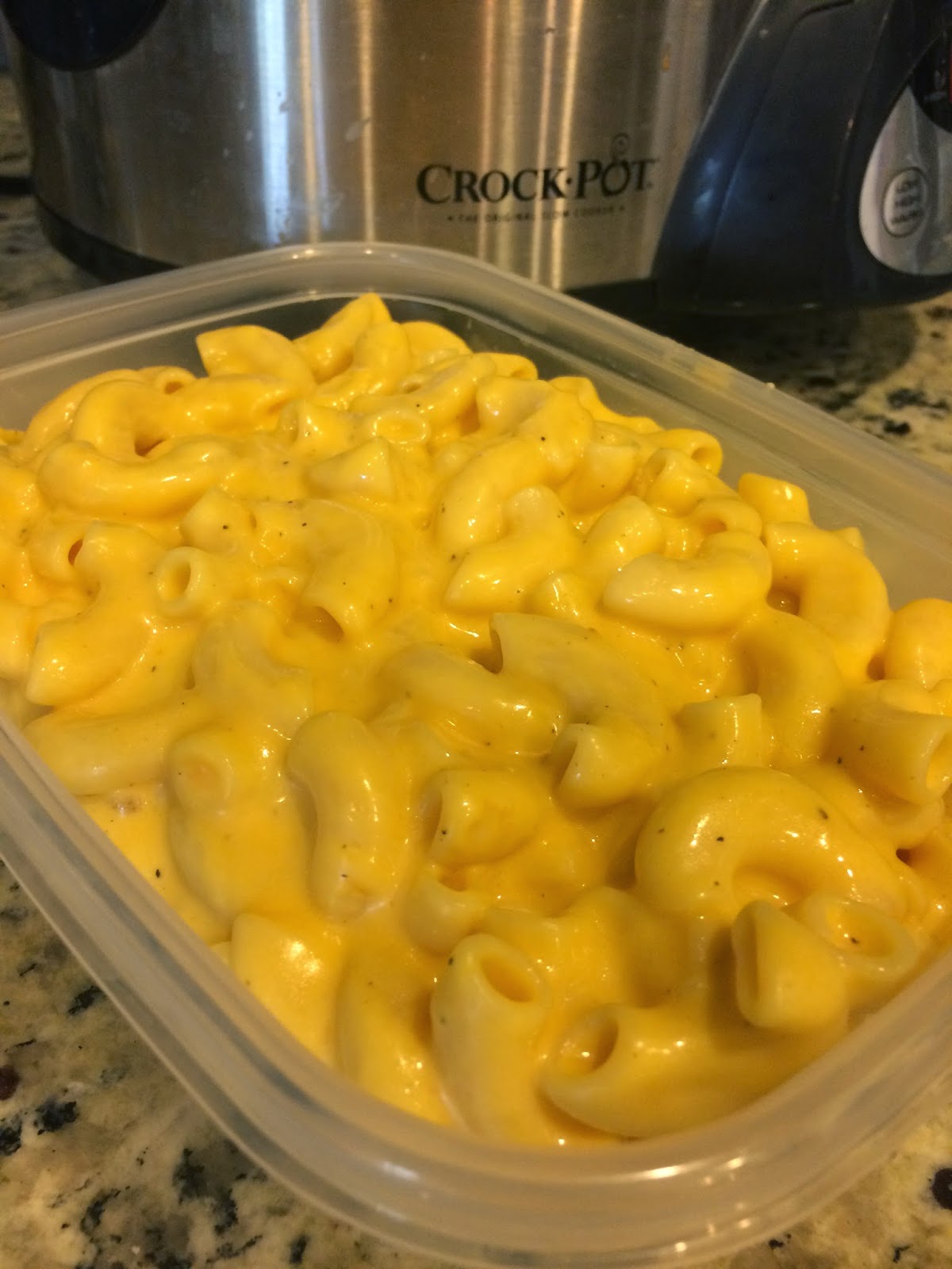 Combine the melted cheese with the cooked pasta and everything else in the Crock Pot.